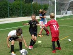 Natürlich stand der Fußball bei Trainingseinheiten im Mittelpunkt. Für die Dauer des Camps sorgten die ausgebildeten Übungsleiter unter Leitung von Peter Stanger für altersgemäßes Training bei den in vier Gruppen aufgeteilten Teams. Kids und Übungsleiter waren gleichermaßen begeistert von den ‚Lehrstunden‘ in Sachen Fußball. So kann man Kinder durch ‚Fußball spielen‘ gezielt zum Fußball heranführen. Dafür sorgten auch die beiden Teamer vom DFB-Mobil, Thorsten Klein und Patrick Mauer, die nach Kroppach gekommen waren.
