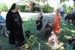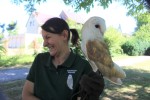 Für die Kleinen übte natürlich die schöne Hüpfburg einen großen Reiz aus, aber auch das Kinderschminken der Theatergruppe „Jedermann“ kam bestens an. Denn im Klostergarten gab es praktisch kein Kind, welches nicht mit wunderschönen Fantasiebildern im Gesicht stolz durch die Gegend lief. Victoria Mayer, sie ist staatlich zertifizierte Waldpädagogin aus Montabaur, war mit der Schleiereule Charly vor Ort. Anamarie Järke, die in Rüber ein Reit- und Therapiezentrum betreibt, war mi zwei Therapie-Ponys und einem Chiwawa angereist. Die erwähnten Tiere waren in einem kleinen Gatter untergebracht, so wirkte das Ganze wie ein Streichelzoo. Die Ponys hatten es natürlich kleinen Mädchen angetan, weil sich ja jedes Mädchen einmal im Leben ein Pony, oder ein Pferd wünscht.