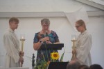 Am Sonntag (21. August) fand ein ökumenischer Gottesdienst statt, geleitet von Pastoralreferent Matthias Scherer und Prädikantin Gabriele Helmer, die sich über ein voll besetztes Zelt freuen durften. Es folgte ein lockerer Gottesdienst, bei dem viel gesungen, musiziert, aber auch gelacht wurde. So fragte Matthias Scherer Ortsbürgermeister Burkhard Kuhn, was denn im letzten Jahr das größte Highlight für Krümmel gewesen sei, dieser antwortete unter dem Gelächter der Besucher: "Die Weizenernte in Marienrachdorf". Man stimmte auch überein, dass die Ökumene noch besser klappen würde, wenn die mittlere und obere Hierarchie in der Kirche sich einig werden würden.