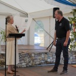 Burkhard Kuhn durfte sich über eine große Gratulationsurkunde des Westerwaldkreises sowie einen extra für diesen Anlass hergestellten Keramikteller freuen. Jens Geimer, der Chef der Hachenburger Brauerei, gratulierte ebenfalls, nicht ganz uneigennützig, aber trotzdem mit viel Beifall bedacht, weil das Aromahopfen-Taxi durch den Ort fuhr und Freibier verteilte. Edeltraud Busch, inzwischen zwar wohnhaft in Herschbach, aber ein waschechtes Krümmeler Eigengewächs, erzählte in Gedicht- und Reimform Anekdoten aus der guten alten Zeit, die gerade bei den älteren Besuchern sehr gut ankamen.