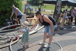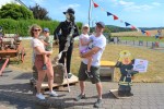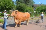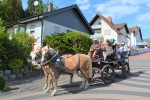 Nach dem Mittagessen konnten sich die Besucher auf den großen Rundweg durch Krümmel begeben, um die vielen Attraktionen anzuschauen. So unter anderem im Westernsalon, dort waren auch Tipis zu bewundern, hier gab es Kutschfahrten, Bogenschießen, Hüpfburg, historische Ausstellungen, Mitmach- Aktionen der Feuerwehr und das Spiel- und Waldmobil. Die größte Aufmerksamkeit zog jedoch "Fritz" auf sich, ein 1.200 Kilogramm schwerer Ochse, der auch durch die vielen Menschen nicht aus der Ruhe zu bringen war und zudem noch einen Pflug aus vergangener Zeit hinter sich herzog.
