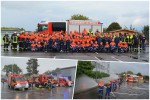 Daran haben die 96 Kinder und Jugendlichen bei der Feuerwehrübung sicherlich nicht gedacht, denn sie waren sehr eifrig damit beschäftigt, schnellstmöglich die Schläuche auszurollen, um diese an die Verteiler anzuschließen, in die das Wasser aus den Tanklöschfahrzeugen (TLF) floss. Dann endlich konnte das lang ersehnte Kommando „Wasser marsch“ ertönen, die Schläuche füllten sich mit Wasser und der Junge oder das Mädchen an der Spritze konnte das Ventil öffnen, um den Strahl auf den „Brandherd“ richten. Wegen der Rückstoßkraft an der Spritze, hielten zwei weitere Feuerwehrleute den Schlauch an sich gedrückt, damit der Wasserstrahl zielgenau auf die Feuerstelle gerichtet werden konnte.