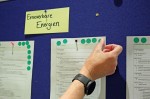 Nach der Vorstellung der Maßnahmen hatten die Anwesenden die Gelegenheit Fragen zu stellen und die Maßnahmen mit Hilfe von jeweils fünf Klebepunkten zu priorisieren. Am höchsten priorisiert wurden dabei folgende Maßnahmen: Koordinierter Ausbau der Windenergie (13), PV auf kommunalen Gebäuden (12), Erstellung eines Radwegekonzepts (11), Ausbau von PV-Freiflächenanlagen (10), Umstellung der Straßenbeleuchtung auf LED (8).