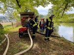 Das fiktive Feuer der Stallung wurde mit Wasser aus dem Schlossgraben gelöscht, der simulierte Vegetationsbrand mittels Wasser aus einem 20 Kubikmeter Wasserfass eingedämmt. Ein unsichtbarer Großbrand, der dank Vorbereitung und Schulung auch als reales Feuer fachmännisch eingedämmt worden wäre. Nach dem Aufbau, kam der Abbau und alles Equipment wurde ordentlich verstaut.
