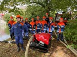 Die Sirenen, die Martinshörner und mit Nähern der einzelnen Fahrzeuge auch das Blaulicht verhießen „Wasser marsch!“. Gut vorbereitet und aufeinander eingespielt konnten die Jugendfeuerwehren zeigen, was sie gelernt haben. 73 Kinder und Jugendliche, 32 Betreuer- 105 „Feuerwehrmenschen“, wie sie ein kleines Kind nannte, das mit seinen Eltern als Zuschauer gekommen war. Schläuche wurden verbunden, Tragkraftspritzen gestartet, Anweisungen wurden ausgegeben und alle arbeiteten Hand in Hand. Konzentriert und motiviert - für die Jugendlichen der Tag, an dem sie beweisen konnten, was sie gelernt haben. Und vielleicht ist auch bei dem ein oder anderen Stolz dabei gewesen, denn so erzählte Devons Oma, ihr Enkel wüsste, dass er bei der Feuerwehr „retten darf“.