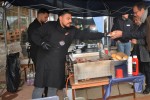 Dann richteten sich die Blicke in die Höhe, denn es folgte der traditionelle Richtspruch, den Gerold Tönjes, Geschäftsführer der „Grossmann Bau GmbH & Co. KG“ unter dem buntgeschmückten Richtkranz hielt. Er bedankte sich beim Bauherrn und bei allen am Bau beteiligten Personen und Firmen für die hervorragende Zusammenarbeit. Mit einem Schluck aus einem übergroßen Rastal Weinglas, welches er anschließend in die Tiefe warf, wo es natürlich zerschellte, endete die Zeremonie. Die Scherben sollen symbolisch dem Gebäude Glück bringen.