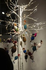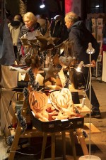 Stoffe mit eigenem Design und personalisiert bestickte Kissen und Küchentücher aus der Stickwerkstatt sind ebenso besonders wie Portraits aus Ton oder Lampen, feine Schreibgeräte und Windlichter aus feinem Porzellan, die sanftes Licht sowie Schattenspiele erzeugen. Viel Bewunderung wurde am Freitagabend auch sehr niedlichen Püppchen und Wichteln aus Naturmaterialien, Woll-Filz und Seide zuteil. Sehr pfiffig waren etliche Figuren und Baumschmuck aus Filz gestaltet, und flotte Hühnermotive auf Papier konkurrierten mit abstrakten Acrylbildern.