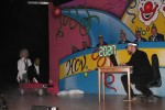 Dass das Stimmungslevel keine Delle erfuhr, dafür sorgten dann das „Ehepaar Georg und Anneliese“, alias Frank Göbel und Susanne Eichmann eindrucksvoll. Szenerie des gestenreichen Zwiegespräches: Die „Worscht Med Klinik“. Hier sollte Georg nach den Vorstellungen von Anneliese sich einer deutlichen Körpergewichtsreduktion unterziehen, was bei Georg alles andere als Begeisterung hervorrief. So hatte er sich vorsorglich einen Wurstvorrat an verschiedenen Verstecken (vom Notfallkoffer bis zum Schädel des Demonstrationsskeletts) angelegt. Bei der meisterhaft gespielten Proletenhaftigkeit der beiden Akteure blieb kein Auge trocken. Das Publikum hatte zwischen den Lachphasen kaum Gelegenheit zum Luft holen.