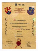 Der Elferrat tauschte am Altweiberdonnerstag eine Bündnisurkunde mit der Bundeswehr aus, die vom Regimentskommandeur Oberst Dr. Funke und vom Vorsitzenden des RKV Thomas Grahl unterzeichnet und im Rahmen des karnevalistischen Festaktes von Oberstleutnant Neumüller überreicht wurde. Im Beisein der örtlichen Politikprominenz (VG-Bürgermeister Gerrit Müller sowie Stadtbürgermeister Raimund Scharwat sowie einiger Vertreter des Stadtrates) wurde die Zusammenarbeit mit leckerem Bier, viel Humor und bester Laune besiegelt.