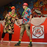 Marius Schenkelberg und Andre Wadulla nahmen als "Die Zwo von de Gemän" kräftig die Ortspolitik und das ganze Drumrum ins Visier. Sie nannten den Elferrat zum Beispiel "eine Abordnung von den Körperwelten". Ein Kumpel wäre in einem "Bio-Puff" gewesen. Auf die Frage, was das denn ein "Bio-Puff" sei, kam die Antwort "Da gehe nur Mädchen aus der Region ihrer Arbeit nach". Marius spielt gerne mit seiner Frau Brettspiele. Er hätte ihr jetzt unlängst ein Brettspiel für eine Person gekauft. Auf die Frage von André, was das denn sei, kam die Antwort "Ein Bügelbrett".