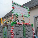 Maxsain. Der Beginn des Karnevalsumzugs war auf 14.11 Uhr festgesetzt, genau um 14 Uhr hörte es auf zu regnen, der Umzug dauerte bis etwa gegen 15 Uhr. Als alles durch war, begann es um 15:10 Uhr wieder zu regnen. Glück gehabt oder besser gesagt, das Glück der Tüchtigen. Sage und schreibe 25 Motivwägen, Musikvereine oder Einzelgruppen zu Fuß und mit Bollerwagen hatten sich angemeldet. Alle versammelten sich vor dem Feuerwehrhaus in Maxsain, um endlich loszugehen.