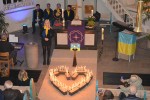Dieser Chor sang "Wir wünschen Friede auf der Welt" auf Hebräisch, Ukrainisch und Deutsch, während des Gesangs herrschte absolute Stille in der Kirche. Anschließend schilderten zwei Frauen aus der Ukraine, mit unter die Haut gehenden Worten, die Situation in der Ukraine, die eigentlich das menschliche Vorstellungsvermögen überschreitet. Sie zeigten aber auch den Stolz und die Würde, die sie für ihr Vaterland empfinden, dass sie niemals aufgeben würden und trotz aller Verluste überleben wollen. Mit beeindruckenden Worten und tränenerstickter Stimme, erreichten beide Rednerinnen die Herzen der Besucher.