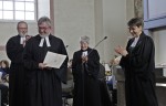 Pfarrer Schmidt dankte seiner Kirchengemeinde, die immer wieder gute Hirten für ihn selbst gewesen seien. Auch Pröpstin Sabine Bertram-Schäfer sprach anhand von Josua, Kapitel 1, Vers 9, darüber, dass Gott an der Seite der Gläubigen bleibe. "Gott geht mit Ihnen, ob im Abschied oder im Neuanfang. Das bleibt immer", so die Pröpstin. Sie entpflichtete Pfarrer Schmidt im Namen der Kirchenleitung aus dem aktiven Dienst als Pfarrer. Dekan Dr. Axel Wengenroth dankte Schmidt für die große Kollegialität seiner Dienstjahre, in denen dieser immer bereit gewesen sei, für Kollegen einzuspringen und zudem mehrere Jahre als stellvertretender Dekan sowie einige Monate als kommissarischer Dekan Verantwortung für das damalige Dekanat Bad Marienberg getragen habe.