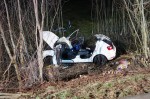 Der 34-jährige Fahrer war aus bislang ungeklärter Ursache nach rechts von der Fahrbahn abgekommen und in einem Gebüsch zum Stehen gekommen. Aufgrund seines sich verschlechternden Gesundheitszustandes musste er von der Feuerwehr mit technischem Gerät gerettet werden.