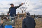 Nach der Mittagspause ging es im praktischen Teil zu den Obstbaumwiesen von Sessenbach und Wirscheid. Unter Anleitung von Harry Sigg wurden die richtigen Schnitte praktisch an den jungen Obstbäumen geübt. Aufgeteilt in vier Kleingruppen, konnten sich die Teilnehmer aktiv an der Durchführung von verschiedenen Schnittmaßnahmen beteiligen. Weiterhin wurde der Erziehungsschnitt in den ersten Lebensjahren eines Obstbaumes erläutert, aber auch über die Verjüngung und den Erhalt von Altbäumen gesprochen.
