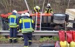 Nentershausen. Ein Sattelzug ist am Montagvormittag (20. März) gegen 8.40 Uhr auf der A 3 Richtung Frankfurt kurz vor der Anschlussstelle Diez bei Nentershausen aus bislang ungeklärter Ursache nach rechts von der Fahrbahn abgekommen. Hierbei überfuhr der Sattelzug die rechtsseitige Schutzplanke, wurde durch diese ausgehebelt und kam schließlich auf der rechten Fahrzeugseite im Böschungsbereich zum Liegen. Der Fahrzeugführer des Sattelzuges wurde durch den Unfall leicht verletzt. Zudem wurde der Tank des Fahrzeuges beschädigt, wodurch Kraftstoff austrat. Die Feuerwehr hat auslaufenden Diesel aufgefangen und den Brandschutz sichergestellt. Am Bereich der Unfallstelle sind derzeit noch der rechte und mittlere Fahrstreifen sowie die Anschlussstelle Diez in Fahrtrichtung Frankfurt gesperrt. Die Bergung des Sattelzuges dauert an. Im Einsatz sind unter anderem die Freiwilligen Feuerwehren Nentershausen, Görgeshausen und Montabaur.
