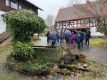 Die Wanderung führte über Wald- und Wiesenpfade zum ehemaligen jüdischen Friedhof, dessen Geschichte Wanderführer Rainer Lemmer erzählte. Es ging weiter, immer stetig bergauf, zum höchsten Punkt der Wanderung, nach Winnen. Bei besserem Wetter wäre hier der fantastische Ausblick bis zum Feldberg und bis weit in das Limburger Becken möglich gewesen. Zumindest erlaubten die tief hängenden Regenwolken und der aufziehende Nebel die Sicht auf Gemünden und das nächste Ziel der Wanderung, die St. Severus Stiftskirche. Um den Dauerregen zumindest teilweise zu entfliehen, verlegte Eichhorn die Erläuterungen zur Geschichte von Gemünden und der Stiftskirche Kirche in die evangelische St. Serverus Stiftskirche.