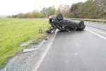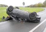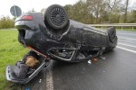 Auffahrt zur A3 bei Montabaur: Pkw überschlagt sich auf regennasser Fahrbahn