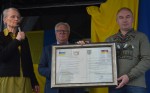 Nataliya Strefler stand freudestrahlend mit auf der großen Bühne vor dem Rathaus, als Gabi Wehland, die Stadtbürgermeisterin von Montabaur, mit Yurij Bowa, dem Bürgermeister von Trostyanets, die Städtepartnerschaft durch Überreichung der prunkvollen Partnerschaftsurkunde endgültig besiegelten. Der Text war in der deutschen und ukrainischen Sprache auf der Urkunde festgehalten, den Gabi Wieland und Yurij Bowa in der jeweiligen Sprache vorlasen.