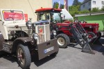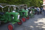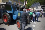 Nach dem Mittag ging es im Korso eine Runde durch das Dorf. Für die erforderlichen Absperrungen sorgte die Freiwillige Feuerwehr Kleinmaischeid. Nicht nur hierbei mussten sich die Autofahrer in Geduld üben. Den ganzen Tag über tuckerten die Traktoren über die B 413 und bremsten den Verkehr aus. Die alten Fahrzeuge erreichen nun mal zum Teil nur Höchstgeschwindigkeiten von 15 Kilometern pro Stunde. Zu bestaunen waren viele bekannte Marken, wie Eicher, Fendt, Deutz, Lantz, Mc Cormick, Lamborghini, John Deere, Hanomag, Güldner, Ford, aber auch weniger bekannte wie Hürlimann. Eingefleischte Fans wissen, dass dieses Modell in der Schweiz zu Hause ist. Auch Exemplare der bayrischen Traktorenmarke Schlüter waren zu sehen. Dieses Unternehmen gibt es heute nicht mehr. Fanclubs halten die Erinnerung an das 1898 von Kommerzienrat Anton Schlüter gegründete Unternehmen hoch. In Grüppchen standen die Traktorenfans mit leuchtenden Augen um die alten Nutzfahrzeuge herum und fachsimpelten.