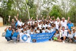 Am nächsten Morgen ging es mit einer Pool-Party weiter, bei der die Künstler gegen Spenden voll bekleidet in den Pool sprangen. Um persönlich zu erleben, wofür die Spendengelder eingesetzt werden, fuhren alle gemeinsam auch zu dem Ort etwas außerhalb von Playa del Carmen, wo das neue Schulgebäude errichtet wird. In dieser sehr armen Gegend müssen die Kinder teilweise noch unter Bäumen unterrichtet werden.
