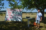 Um nicht zu provozieren, oder Probleme mit der Obrigkeit zu bekommen, wurde das Info-Picknick kurzerhand auf eine Wiese am Rande von Nordhofen verlegt. Trotzdem erschien eine Polizeistreife, um zu überprüfen, ob die Vorgaben auch eingehalten werden.