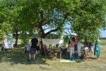 Bei brütender Hitze fand die Versammlung trotzdem statt, wahrscheinlich blieben wegen der fast unerträglichen Hitze etliche Menschen zu Hause. Gott sei Dank konnten die Teilnehmer unter Schatten spendenden Bäumen sich vor der prallen Sonne etwas schützen.