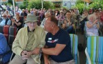 Richtig in Bewegung kamen die teils betagten Zuschauer, als Rolf Stahlhofen den Superhit von Drafi Deutscher sang. "Marmor, Stein und Eisen bricht" erschallte im großen Chor, da alle das Lied aus ihrer Jugend kannten und den Refrain "Dam, Dam, Dam, Dam" mitsangen und mitklatschten. Es folgte ein großer Erfolg von den "Söhnen Mannheims", nämlich "Geh´davon aus" und zuletzt "Moon dance" von Van Morrison. Als Rolf Stahlhofen zu seiner Dankesrede ansetzte, wurde er vom Publikum überrascht, das nach einer Zugabe rief. Diesen Wunsch konnte sich Rolf Stahlhofen nicht entziehen und so stimmte er als letzten Song den Soulhit "Stand by me" (Bleib bei mir) an.