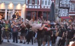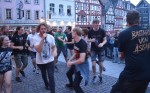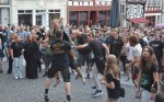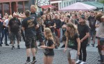 Hachenburg. Der "Alte Markt" in Hachenburg war mit etwa 1.500 Besuchern sehr gut frequentiert. Wer gedacht hatte, dort würde man nur Jugendliche und Heranwachsende antreffen, der sah sich arg getäuscht, denn bemerkenswert viele "Grauschädel" feierten ebenfalls. Obwohl von der Bühne lautstark dem Metalcore gefrönt wurde, dass manchem die Ohrstöpsel rausflogen, entwickelte von Beginn an eine friedliche, ausgelassene Party. Das lag hauptsächlich an der Band, die sich von der allgemeinen Begeisterung anstecken ließ und bis an ihre Grenzen ging, aber auch an dem euphorischen Publikum, das während und nach den Songs sich und die Band frenetisch abfeierte.
