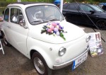 Ins Auge fiel auch ein kleiner weißer "Hochzeitswagen": Hier hatte sich ein Silberhochzeitspaar eingefunden, das seinen besonderen Tag mit den Freunden beim Italo-Treffen feiern wollte. Der tolle Blumenschmuck in Pastelltönen auf der Motorhaube erwies sich als gehäkelt. Herzlichen Glückwunsch an das Ehepaar an dieser Stelle! Originell gestaltet von "EC Performance Tuning Rodgau" waren die sechs Trophäen, die am späten Nachmittag überreicht wurden: für das älteste Fahrzeug, die weiteste Anreise, den "Wolf im Schafspelz" und "Best Car of Show" (Platz eins bis drei).