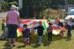 Als die Kinder das Missionszelt verließen, hatte inzwischen es aufgehört zu regnen und die Sonne erschien hinter den Wolken. Auf dem großen Wiesengelände vor dem Zelt begannen die verschiedenen Gruppen mit allerlei unterhaltsamen Spielen, die von den Kindern mit Begeisterung aufgenommen und durchgeführt worden. Mit Muffins und Donuts, Würstchen und Slush-Eis sowie allerlei Getränken fand der Kindernachmittag ein schönes Ende.
