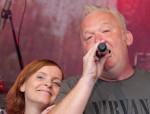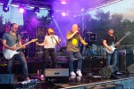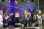 Dass es für eine hier bis dato unbekannte Band schwer ist, das Publikum schon beim ersten Titel zu überzeugen und mitzureißen, steht außer Frage. Umso schwerer wird dieses Vorhaben, wenn exakt mit den ersten Tönen der Himmel seine Schleusen öffnet und das Wetter verrückt spielt. Elektroschächte liefen voll, auf der Bühne standen Lautsprecher ebenso wie die Band und ihre Instrumente im Wasser und die zu diesem Zeitpunkt nur wenigen Zuschauer flüchteten unter die Sonnenschirme, die zu Regenschirmen wurden.