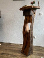 Dernbach. Die Zeremonie der Einsegnung fand am 15. August um 15 Uhr im Gemeinschaftssaal des St. Thomas Hospizes in Dernbach statt. Pater Elmar Busse hat die Stele in Anwesenheit von Heimleiterin Eva-Maria Hebgen, Freunden, Angehörigen und Gästen mit einer ergreifenden Zeremonie eingeweiht. In seiner Predigt hob Pater Busse die Bedeutung des Gedenkens und der Erinnerung - auch mit Verweis auf das hohe Gut der Religionsfreiheit - hervor. Die aus Balkengehölz des Dachstuhls des Westerwälder Doms geschaffene Stele ist Rita Wagner, ehemals Gast im Hospiz und dort verstorben, gewidmet. "Frau Wagner", so erinnert sich Hospizleiterin Eva-Maria Hebgen nach der kleinen Andacht, "war eine taffe Frau, die dem betreuenden Team gegenüber große Dankbarkeit verspürte."