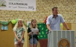 "Die genaue Untersuchung des Bestandsgebäudes hat ergeben, dass Abriss und Neubau wirtschaftlicher sind als Sanierung und Umbau", übersetzte Gleis die Aussagen der Mädchen für die Erwachsenen im Publikum. Er bedankte sich beim Verbandsgemeinderat, der grünes Licht für das Neubauprojekt gegeben und die Haushaltsmittel bereitgestellt hatte, bei den beteiligten Mitarbeitern der Verwaltung, die das Projekt koordiniert haben, bei seinem Lehrerkollegium, das Bauzeit und Umzug mit viel Ausdauer bewältigt hat, bei den Schülern und Eltern, die viel Verständnis gezeigt haben, dem Förderverein, der die Einbauküche spendiert hat, und beim Hausmeister und der Sekretärin, die sich vor Ort und neben ihren eigentlichen Aufgaben um die Baustelle gekümmert haben, "als wäre es ihre eigene."