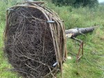Basis des Korbes ist ein verzinktes Grundgestell, auf dem eine "Plattform" aus Douglasienbrettern geschraubt wurde. Ein Geflecht aus Weide ließ dann einen Korb entstehen, der mit Birkenreiser ausgekleidet wurde. Das Ganze wurde auf einem Lärchenstamm und zwei Meter tief im Boden befestigt. Stabilisiert wurde es durch eine seitliche Abspannung.
