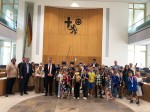 Die Freude bei Schülern und Lehrern war groß, als SPD-Abgeordneter und Landtagspräsident Hendrik Hering eine Einladung in den Mainzer Landtag aussprach, um dort das Theaterstück zu präsentieren. Welcher Ort könnte auch besser für ein solches Stück sein, als vor einem echten Parlament?! Kurz vor den Sommerferien war es so weit und die Gruppe aus 50 Schülern machte sich mit fünf Lehrern auf den Weg nach Mainz, um das Stück im Plenarsaal des Landtags zu präsentieren. Nicht nur Hendrik Hering war von der Aufführung begeistert, auch die anderen Abgeordneten schenkten den Kindern einen enthusiastischen Applaus. "Eine so ausgelassene Stimmung mit Musik und Gesang gab es hier auch noch nicht", freute sich Hering und lud die Kinder mit ihren Begleiter als Dank zu einem gemeinsamen Imbiss ein.