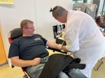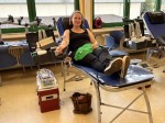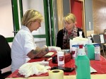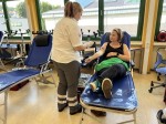 Sabine Meffert, Angestellte des DRK und in Ausbildung zur Phlebotomie- / Punktionskraft, war eine der Verantwortlichen. Mit einem Tropfen Blut, entnommen aus Ohr oder Finger, bestimmte sie den wichtigen Blutwert und lockerte die Atmosphäre mit ihrer freundlichen Art auf. Das anschließende Aufklärungsgespräch mit einem Arzt und dann der Weg zur eigentlichen Blutentnahme, schien für die Anwesenden mehr mit Freude, als mit Furcht belegt zu sein. Nur wenige Erstspender hatten noch ein wenig Angst vor dem "Pieks" in die Cubitalvene des Armes. Nur wenige Minuten dauert es, bis vollautomatisch 500 Milliliter Blut entnommen werden. Alle Spender sagten danach, dass es nicht schmerzte.