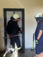 Ebenso verfügt das Gebäude neben einfachen Zimmertüren auch über speziell präparierte Übungs-Stahltüren, sogenannte Breaching-Türen. Ein interessantes Türöffnungstraining ist so möglich. Neben den vermittelten rechtlichen Grundlagen und Voraussetzungen konnten die Teilnehmer sowohl zerstörungsfrei mittels Dietrichen, Spiraldrähten oder Türfallengleitern an den Zimmertüren, zerstörungsarm mittels zum Beispiel Ziehfix als auch zerstörend mittels Halligan-Tools an den präparierten Stahltüren üben.