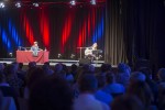 Hunderte Fans von Klaus-Peter Wolf und Bettina Göschl füllten das Kulturwerk in Wissen am Freitagabend, 6. Oktober. Der aus dem Westerwald stammende Schriftsteller lebt inzwischen in Norden in Ostfriesland. Als Ehrengast darf er den Wissener Jahrmarkt eröffnen. Seine Frau Bettina Göschl, die Kinderbücher schreibt, lockert seine Lesungen mit eigenen Liedern auf.