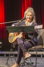 Bettina Göschl hatte am Vormittag mit 400 Kindern im Kulturwerk gelesen und gesungen. Dass Bettina und Klaus-Peter gemeinsam auf der Bühne stehen, ist ihnen wichtig. Genauso wichtig wie die Leseförderung, mit der Bettina beruflich begann. Sie fuhr oft per Zug dahin, wo ihr Mann las. Da sie oft gebeten wurde, für das Publikum zu singen, sang sie mit den anwesenden Gästen Kinderlieder. Irgendwann schrieb Bettina ein Krimi-Lied für die Erwachsenen: "Ostfriesenblut". Zwei Wolf-Romane werden pro Jahr für das ZDF verfilmt. Die Titelmelodie "Ostfriesenblut" wird von Bettina gesummt, das ergab sich zufällig.