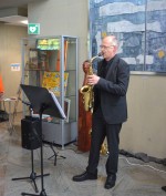 Während der Vernissage wurden die Besucher bestens von Christian Gansemer unterhalten, der im Hauptberuf als stellvertretender Leiter der Kreismusikschule im Westerwaldkreis tätig ist. Sein bevorzugtes Instrument ist das Saxofon, dem er vorzügliche Klänge entlockte, unter anderem konnte er mit "Red Life" von Sting und "Your Song" von Sir Elton John begeistern und wohlverdienten Beifall empfangen.