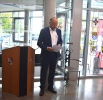 Maik Rosenkranz, stellvertretendes Mitglied des Vorstands der Sparkasse Westerwald-Sieg (SKWWS), die auch gleichzeitig Hauptsponsor der Kunstmeile ist, begrüßte die zahlreich erschienenen Gäste und fand nur lobende Worte für die ausstellenden Künstler, die mit ihrem Schaffen auch die Region repräsentieren würden. Maik Rosenkranz bedankte sich ausdrücklich beim Hausherrn der VG Bad Marienberg, Bürgermeister Andreas Heidrich, dass die Ausstellung im Foyer des Verwaltungsgebäudes stattfinden konnte.