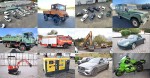 Auch ein Feuerwehrfahrzeug, mehrere Lkws, Unimogs, Bagger, Dumper, Radlader, Anhänger, Motorräder und drei Linde Gabelstapler stehen am Samstag, 4. November 2023, zur Versteigerung.