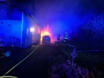 Stockum-Püschen. Zu einem Garagenbrand mussten die Feuerwehren aus Stockum-Püschen, Enspel, Bellingen, Langenhahn und Hintermühlen am Abend des 6. Novembers in die Waldstraße nach Stockum-Püschen ausrücken. Vor Ort stellten die ersten eintreffenden Einheiten fest, dass eine Garage mit einem davor stehenden Fahrzeug im Vollbrand stand. Die Flammen hatten bereits auf den Dachüberstand eines angrenzenden Zweifamilienhauses übergegriffen.