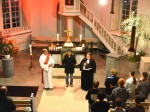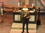 Vor dem Ende der Gedenkfeier erhielt jeder Besucher eine Kerze, die angezündet und beim abschließenden Gebet in den Händen gehalten wurde. In einem Winkel der evangelischen Kirche hatten Schüler verschiedene Zeichnungen, Notizen und Gedichte von KZ-Insassen ausgestellt, die diese während ihrer Gefangenschaft hergestellt hatten.