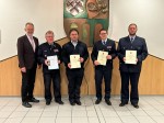 Ebenfalls auf der Tagesordnung standen Ehrungen für den jahrelangen aktiven Dienst in der Freiwilligen Feuerwehr sowie die Verleihung der Einsatzmedaille "Fluthilfe 2021". Timo Schneider und Marcel Birk freuten sich über die Auszeichnung mit dem Bronzenen Feuerwehrehrenzeichen des Landes Rheinland-Pfalz für ihre 15-jährige Tätigkeit. Patrik Herkersdorf wurde mit dem Silbernen Feuerwehrehrenzeichen für seine 25-jährige Tätigkeit geehrt. Weil Oliver Spies den ursprünglichen Ehrungstermin nicht wahrnehmen konnte, freute er sich über die nachträgliche Verleihung der Einsatzmedaille "Fluthilfe 2021" für seine geleistete Hilfe im Ahrtal. Bürgermeister Andreas Heidrich sprach allen sein Lob für ihre Verlässlichkeit sowie ihr vorbildliches Engagement im Brandschutz aus.