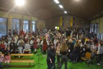 Am Ende des Stückes besuchte sogar der Weihnachtsmann die Stöffelhalle, dabei wurde er von sieben Wichteln begleitet. Nun versammelten sich alle Schüler vor und auf der Bühne, um zusammen mit den Besuchern noch ein Weihnachtslied zu singen.