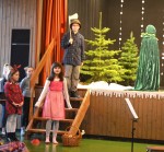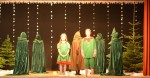 Nachdem der Schulchor, mit der musikalischen Begleitung durch Snezhana Müller am Piano, mit Weihnachtsliedern die Besucher auf das Theaterstück einstimmte, öffnete sich der Vorhang. Nun waren auf der Bühne fünf Kinder zu sehen, die in grüne Gewänder gehüllt, saftige Tannen darstellen sollten. Dazwischen stand ein Kind, das braun gekleidet war und eine kranke, dürre Tanne symbolisierte.