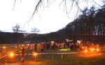 Mit vielen Helfern gelang es der Andreasgemeinde, das Gelände mit Flatterbändern abzugrenzen und einige kleine Bäume auf der Wiese mit Lichterketten und Fackeln zu schmücken. So konnte wenigstens etwas weihnachtliche Stimmung hergezaubert werden.