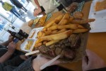 Besonders lukrativ war es, zu zweit oder in der Gruppe unterwegs zu sein, damit man möglichst viele verschiedene Angebote wahrnehmen konnte. Diverse Wurstsorten konnten mit großer Soßenauswahl kombiniert werden, dazu gab es Baguette-Brotscheiben, Brötchen, Toast, Pommes frites oder Pommes-Chips. Mehrere Standbetreiber erleichterten die Qual der Wahl, indem sie Festival-Teller mit unterschiedlichen Wurststücken und Soßen bereithielten.